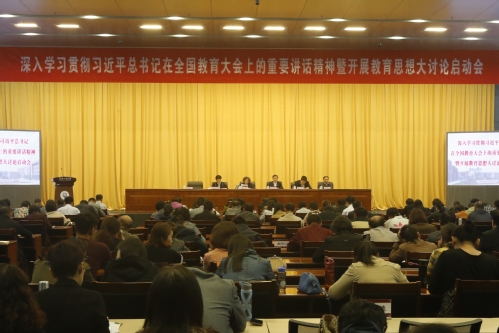2018年10月12日下午,我校深入学习贯彻习近平总书记在全国教育大会上的重要讲话精神暨学校教育思想大讨论启动会在学术中心报告厅举行,这也是我校党委理论学习中心组扩大会议。党委书记连洁,党委副书记、校长夏长亮院士,党委副书记刘亚男,纪委书记裴军,副校长程博闻出席,全体中层干部、学院教师学生代表近300人参加了会议。会议由党委书记连洁主持。