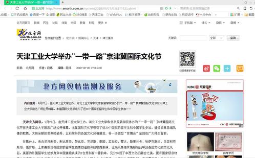 2018年09月28日,北方网以《天津工业大学举办一带一路京津冀国际文化节》对我校做了报道,现将全文转发如下,以飨读者。