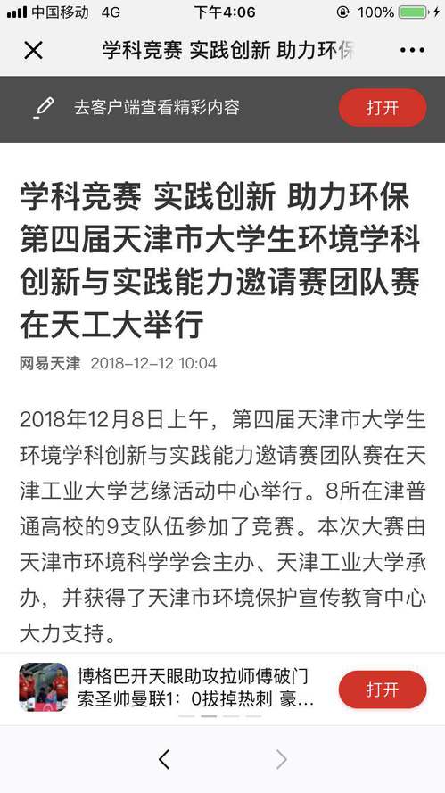 2018年12月12日,网易新闻以《实践创新助力环保第四届天津市大学生环境学科创新与实践能力邀请赛团队赛在天工大举行》为题对我校做了报道,现将全文转发如下,以飨读者。