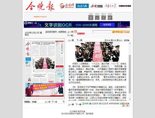 2018年12月13日,《今晚报》第01版以《国家公祭日默哀一分钟》为题对我校做了报道,现将全文转发如下,以飨读者。