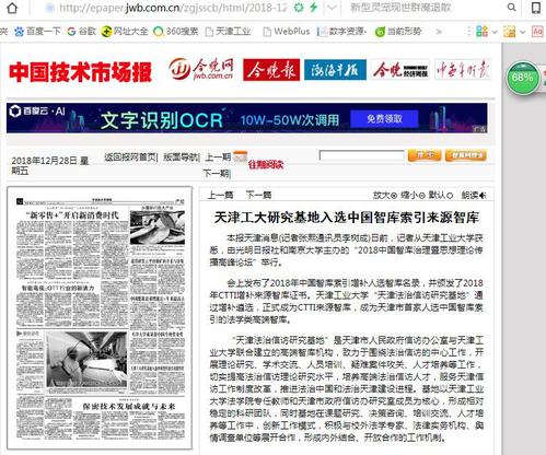 2018年12月28日,《中国技术市场报》第A2版以《天津工大研究基地入选中国智库索引来源智库》为题对我校做了报道,现将全文转发如下,以飨读者。
