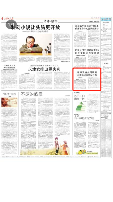 2019年03月11日,《天津工人报》第四版以《精微素描全国巡展天津工业大学站开幕》为题对我校做了报道,现将全文转发如下,以飨读者。