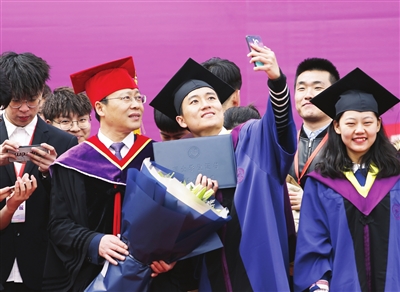 日前,天津工业大学一反以往在学校礼堂举办“会议式毕业典礼”的常态,在学校体育场的草地上为2019届的934名研究生举办了一场简洁而庄重的毕业典礼。“今年的毕业典礼特别接地气!”一名毕业生激动地说。虽然当日天气有点阴,但风暖草青,春意如画,毕业生们心情很“嗨皮”。在毕业典礼讲话中,校长夏长亮院士除了列举自己一直挂在心头、看似琐碎的学生学习和生活上的“小事”,还勉励毕业生们脚踏实地、胸怀祖国。在正式仪式结束之后,他很配合地留在台上,应学生们的各种合影留念要求,配合拍照半个小时。(本报记者姜宝成摄影报道)