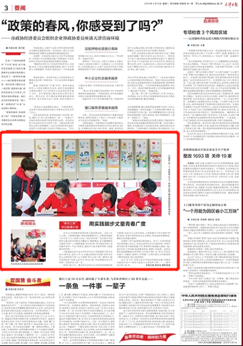 2019年4月9日,《天津日报》第三版以《用实践脚步丈量青春广度》为题对我校做了报道,现将全文转发如下,以飨读者。