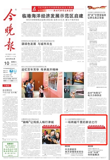 2019年8月10日,《今晚报》第一版以《天工大教师暑期赴新疆学生家中 一场跨越千里的家访之行》为题对我校做了报道,现将全文转发如下,以飨读者。