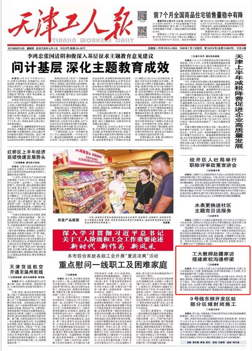 2019年8月15日,《天津工人报》第一版以《工大教师赴疆家访搭建家校沟通桥梁》为题对我校做了报道,现将全文转发如下,以飨读者。