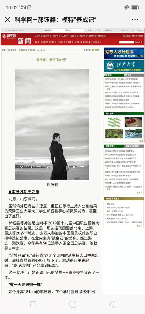 2019年9月25日,《中国科学报》第8版以《郝钰鑫:模特“养成记”》对我校做了报道。现将全文转发如下,以飨读者。