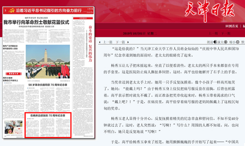 2019年10月1日,《天津日报》第3版以《在病床边颁发的70周年纪念章》对我校做了报道。现将全文转发如下,以飨读者。