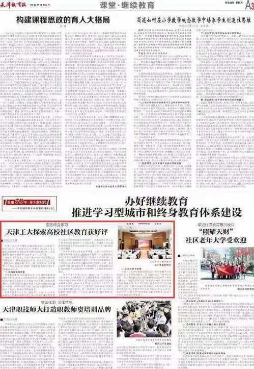 2019年11月06日天津教育报第A3版以《天津工大探索高校社区教育获好评》对我校做了报道。现将全文转发如下,以飨读者。