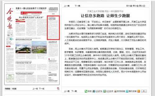 2019年11月18日《今晚报》第1版以《天津工业大学启建 师生一体化服务平台 让信息多跑路 让师生少跑腿》对我校做了报道。现将全文转发如下,以飨读者。