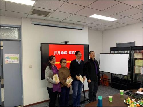 在非常温馨的气氛中,在场所有老师一起观赏了视频集锦“我们一起走过的青葱岁月”及广大师生祝福视频。毕业生在自己的工作岗位上展示并表达了对三位恩师的感谢和深深祝福之情。三位老师也收到了学生亲笔写的贺卡,收到了签满所有老师名字的新年祝福贺卡。随后老师们展开热烈地交流和座谈,分别抒发了对退休教师的祝福和恋恋不舍之情,气氛融洽。最后,全体教师合影留念。
