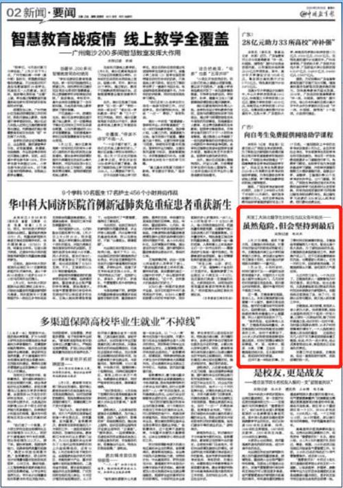 2020年2月29日,《中国教育报》以《天津工大湖北籍学生封村后当起义务采购员——虽然危险,但会坚持到最后》为题,对我校学生王傲庭进行了报道,现将全文转发如下,以飨读者。