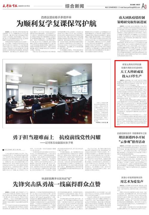 2020年3月11日,《天津教育报》以《研发出具有天然抗菌抑菌作用的非织造材料——天工大科研成果投入口罩生产》对我校作了报道,现将全文转发如下,以飨读者。