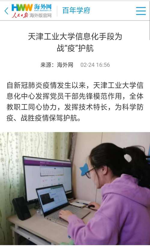 2020年2月24日海外网以《天津工业大学信息化手段为战“疫”护航》对我校做了报道。现将全文转发如下,以飨读者。