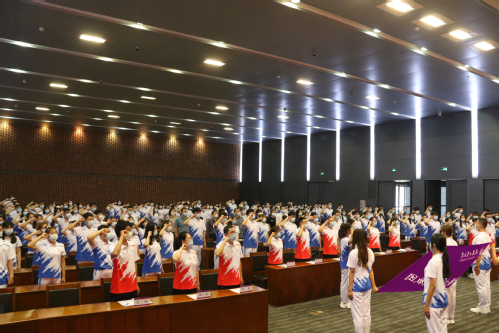 2020年9月26日下午,“天津工业大学赴新疆实习支教团成立仪式暨出征大会”在学术中心报告厅举行。校党委书记俞绍平、校党委副书记胡英江,各相关职能部门、学院负责人,全体支教团师生参加大会。大会由学工部部长范甜主持。