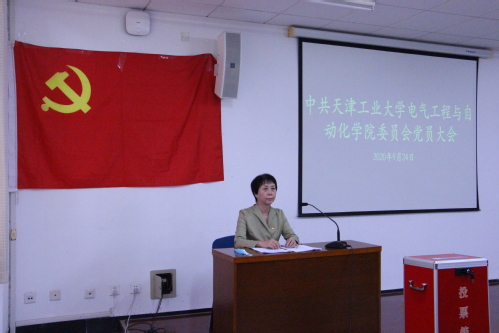 2020年9月24日下午,电气工程与自动化学院党委在4D313报告厅召开全体党员大会,选举产生了学院新一届党委委员和纪委委员。会议由学院党委书记李红霞主持,校党委组织部副部长覃兰静列席会议。