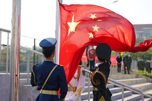 汇报大会在庄严的升国旗仪式中拉开序幕,全场肃立并高唱国歌。随后,俞绍平书记向中国人民解放军93688部队赠送锦旗,代表学校对承训部队严格要求、科学施训表示诚挚的敬意和衷心的感谢。