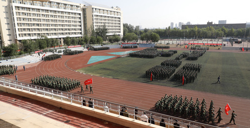 9月30日上午,我校2020年学生军训成果汇报大会在望星体育场举行。天津警备区学生军训工作办公室主任辛维刚,河东区武装部政委王卫东,中国人民解放军93688部队副政委李晋,中国人民解放军93688副教导员、学校军训团团长丁聪,校党委书记俞绍平,校党委副书记陈泮成出席。学校相关职能部门、各学院负责人,全体承训官兵和全体参训学生参加。大会由人民武装部部长张志勇主持。