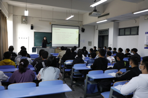 “未来的无限可能来自于你‘尽善尽美、成为最好’的强烈愿望。”针对从高中生到大学生身份转变带来的迷惘,结合课本第一单元的主题,老师们启发学生由英语26个字母找出了各自所对应的词汇,解答了同学们学习生活会面临的困惑,给出了中肯的建议,并激励他们积极向上,刻苦学习。老师们设计了天工三问:你眼中的理想天工、你期待的天工生活、你的天工时间表?通过提问、演讲、讨论等互动形式,由外及内、由知而行,带领学生明确自己的英语学习目标和实现方式。通过介绍《大学英语》课程的体系脉络,明确英语能力的工具属性:在高中学习的基础上进一步提高英语听、说、读、写、译的能力,再结合所学专业和职业规划,学习有关学术英语或职业英语,获得在学术或职业领域学习、交流的能力。