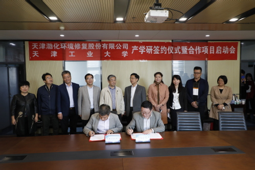 在聘任仪式上,举行了天津渤化环境修复股份有限公司——天津工业大学材料学院产学研合作签约仪式,并举行了双方合作项目的启动会。天津渤化环境修复股份有限公司董事长杨成良、我校材料科学与工程学院副院长张亚彬分别代表双方签署产学研合作协议。
