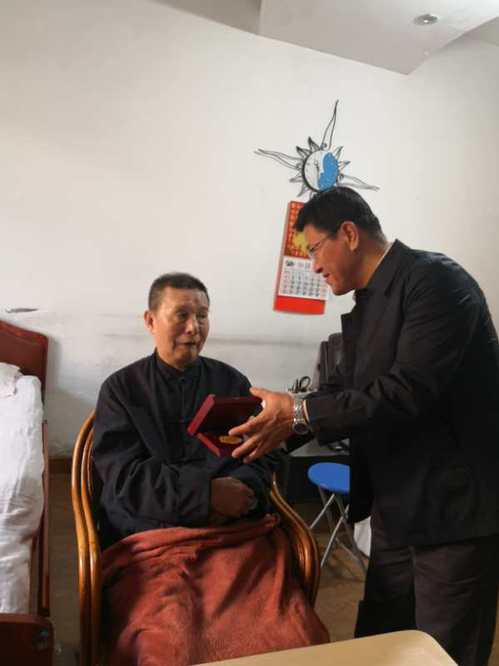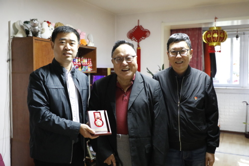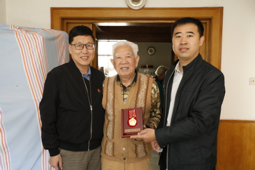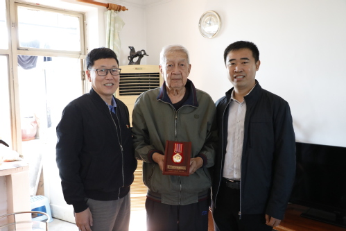 我校鹿中甫、朱霭、韩德育、赵淑贤、杨秀玉、刘馨远、万春芳7位老同志获颁“中国人民志愿军抗美援朝出国作战70周年”纪念章。近日,由校党委副书记胡英江、陈泮成带队,校党委组织部、离退休工作办公室主要负责同志陪同,采取登门拜访的形式,逐一将纪念章送至老同志及家属手中。每到一处,工作组与老同志及其家属亲切交谈,共同回忆当年的烽火岁月,详细了解他们的生活和身体近况,向老同志们致以崇高的敬意和诚挚的问候。