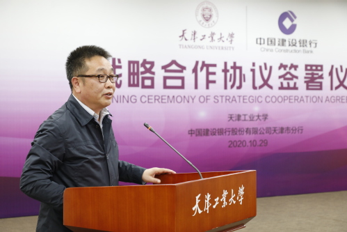 2020年10月29日下午,我校与中国建设银行天津市分行签署战略合作协议,本着“长期合作、互惠互利、强强联合、共同发展”的原则,建立长期的、深层次的、全面的战略合作关系。我校党委书记俞绍平、副校长张玉波,中国建设银行天津市分行副行长石毅超,双方相关部门负责人参加签约仪式。签约仪式由党委(校长)办公室主任沈浩鹏主持。