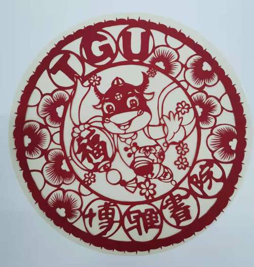 巧手翻飞,剪子咔嚓响处,碎纸窸窣落下……一幅栩栩如生的“娃娃牛”剪纸作品很快就出现在曹老师手上,引得同学们纷纷称赞。牛,在中国传统文化中是勤劳善良的象征。牛象征着春天,生机勃发,整体寓意吉祥、喜庆。同学们在曹老师的悉心指导下创作出一幅幅生动有趣的剪纸作品,活动现场不时传出欢快笑声。