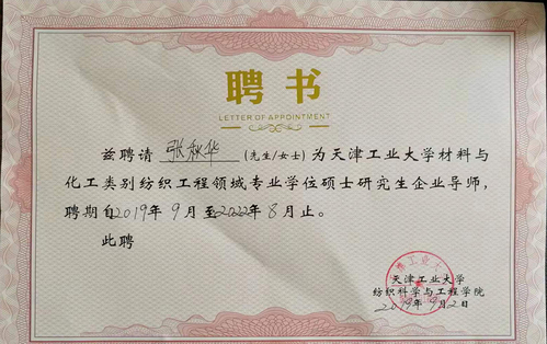 张秋华在气凝胶材料提升纺织品性能研究方面,为我校提供技术支持。她作为研究生企业导师,为我校人才培养贡献自己的力量。