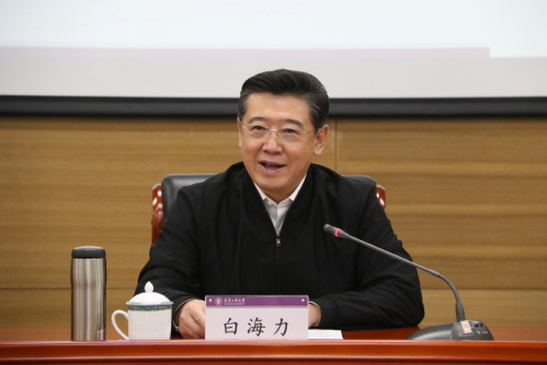 为深入贯彻习近平新时代中国特色社会主义思想,落实市委统一部署,深入推进领导干部进校园开展思想政治工作,2020年11月27日,天津市委教育工委委员、市教委副主任白海力同志专程来我校调研思想政治工作,并为师生们现场讲授示范思政课。我校党委副书记胡英江同志主持报告会,师生代表80余人聆听授课,市教育两委有关处室及我校党政部门负责同志参加。