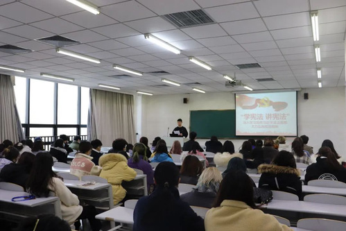 12月4日下午,我校杜文勇教授在法学院304会议室举行“宪法精神”主题讲座。杜老师深入讲解了宪法的序言及部分重要章节,带领学生重温了公民的权利和义务。我校100余人参加讲座。师生们积极响应,深入了解“国家宪法日”设立的由来和重要意义,用心体会宪法的庄严与神圣,对宪法有了更深层次的了解,增进了宪法意识,弘扬了宪法精神。