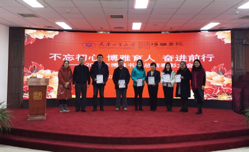 博雅书院院长肖强教授为本学期帮助与支持书院建设的天津市褀海科技发展有限公司、天津超星数图信息技术有限公司、自然也(天津)文化发展有限公司、天津棋院以及我校艺术学院、图书馆颁发感谢状;为2020优秀执行委员经济与管理学院李姚老师、杜亚姣老师、法学院袁欣老师颁发证书。博雅书院常务副院长尚绪芝和图书馆副馆长姚立新为本年度名师全勤打卡的54名学生、经典共读表现突出的20名学生、平台活跃前20名学生、2020-2021-1学期课程中表现突出的60名学生、书院微信公众号建设和维护团队学生代表13名学生以及“读书点亮生活”演讲比赛中获奖的10名学生代表颁发证书。