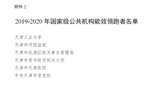 2020年12月23日,天津市机关事务管理局官方网站发布了《市机关事务管理局市发展改革委市财政局关于公布2019-2020年国家级节约型公共机构示范单位和能效领跑者名单的通知》,全市有6家单位被授予国家级公共机构能效领跑者(以下简称能效领跑者)称号,我校成为本市唯一一家获得此项荣誉的高校。