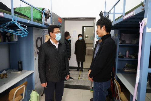 2021年3月9日上午,校党委副书记胡英江到学生公寓检查指导学生公寓疫情防控常态化措施落实和春季开学准备工作。党委(校长)办公室、学工部、安全工作部、后勤管理处相关负责同志陪同检查。