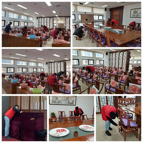 活动中,师生们拿起劳动工具,对博雅书院报告厅等区域进行了全方位清洁,古雅的条案花椅、格扇轩窗在志愿者手中焕发出崭新的光彩,学院师生通过志愿服务抒发了担当奉献、爱校荣校的情怀。