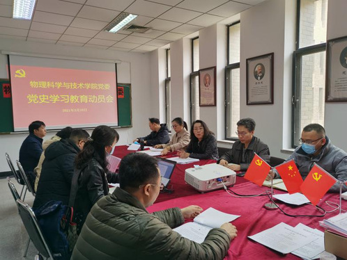 2021年3月18日下午2:30时,物理科学与技术学院党委党史学习教育动员会在学院B209会议室准时召开。会议由学院党委书记成玲同志主持,学院党委委员、全体党支部书记与党员代表出席会议。