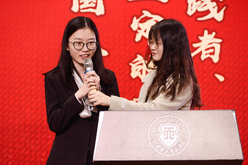 “天津市自强自立年度人物”评审工作分为校级评审、市级评审两级。校级评审采取现场PPT展示并由校内外专家评审团打分的形式,从各学院推荐的16名品学兼优的家庭经济困难学生中选拔产生10名“自强之星”,其中得分排名第一的同学被推荐参评市级终评会。市级评审采取1分钟视频、4分钟PPT汇报的形式,从天津市各大本科院校推荐的18名候选人中选拔产生5名“天津市大学生自强自立年度人物”。