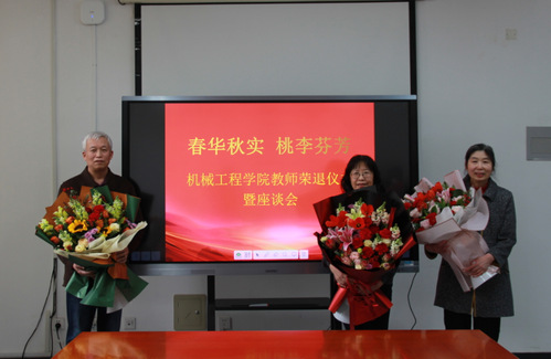 最后,学院向三位退休教师赠送了鲜花和纪念品,表达学院对退休教师的感谢与祝福。荣退仪式在热烈温馨的氛围中结束。(审稿:机械工程学院 覃兰静 编辑:宣传部 李焕峰)