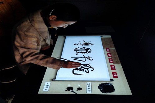 欢迎广大师生来博雅书院体验数字书法机。(审稿:博雅书院 倪娟 编辑:宣传部 柳婷)