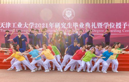 春风和煦,美丽校园到处洋溢着欢乐的气氛,又是一年毕业季。3月31日下午,天津工业大学2021年研究生毕业典礼暨学位授予仪式在旭日运动场隆重举行。校党委书记俞绍平,校长、中国工程院院士夏长亮,校党委副书记胡英江,常务副校长陈莉,副校长姜勇、张玉波、刘义,校学位评定委员会成员,各单位、各学院主要负责同志,各学院主管学生工作党委副书记及学生工作人员,杰出校友代表,全体毕业生,毕业生家长,欢聚一堂,共同见证和分享学子们收获的喜悦。典礼仪式由胡英江副书记主持。