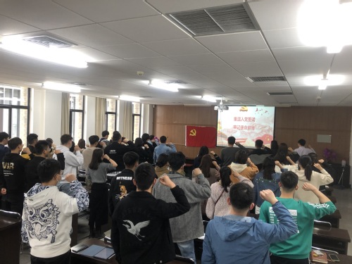 随后,学院组织召开了毕业生党员大会。全体毕业生党员重温入党誓词,在党旗的见证下,全体毕业生党员重温了自己对党忠诚的铮铮誓言,表达了“不忘初心、牢记使命”的信念和决心。
