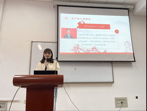 随后,马克思主义学院第二研究生党支部周成和蒋晨曦分别作了学习分享。周成以“新征程再出发”为题进行了分享。他说,早在延安时期,毛泽东同志在《如何研究中共党史》中就强调了对党史的研究和学习。在中国共产党成立100周年这个重大的时间节点上在全党开展党史学习教育,意义非凡。蒋晨曦结合自己阅读《共产党宣言》的心得体会,作了题为“共产党人的历史使命”的分享。她认为,作为新时代的大学生党员,要坚定对马克思主义的信仰,自觉践行以人民为中心的发展思想。