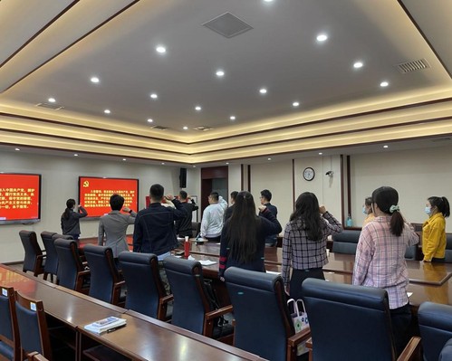 会议伊始,张丹老师带领全体参会人员向党旗庄严宣誓,重温入党誓词。