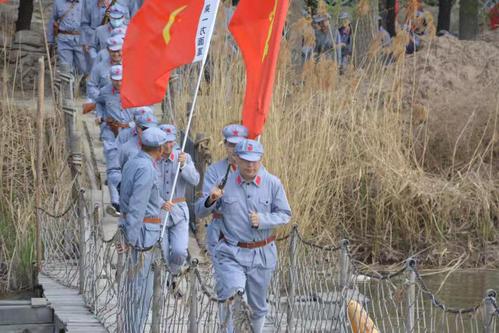 上午9点,大家身着红军装,在党旗下重温入党誓词,在雄壮的军歌声中,开始了“重走长征路”活动。活动中,大家亲身体验了湘江战役、遵义会议、四渡赤水、飞夺泸定桥、爬雪山过草地、激战腊子口等,历时2个多小时最终到达三军会师地。全程徒步4.5公里,越沟壕,穿山洞、过险河。一路上,大家边追忆、边亲历、边学习,在途中主要点位,结合体验项目,开展互动交流和主题学习,深刻感受先烈们信念坚定、不怕牺牲、百折不挠、奋勇向前的革命精神。胜利会师后,全体人员齐唱《我和我的祖国》,进一步坚定理想信念。
