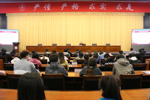 为深入贯彻落实习近平新时代中国特色社会主义思想,庆祝中国共产党成立100周年,推动学生党史学习教育,4月13日下午,我校在学术中心报告厅举行学生党史教育报告会暨2021年天津市“教授团”主题宣讲活动。天津市高校“培根铸魂学四史 百年筑梦立初心”教授团宣讲成员马红健老师应邀作了题为“从毛泽东诗词看中国革命历史”的专题报告,2020年新入职辅导员及在校学生代表约260人参加。