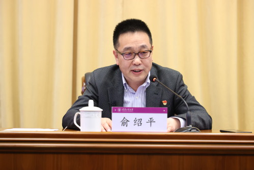 俞绍平书记对《教育部关于建立健全高校师德建设长效机制的意见》《新时代高校教师职业行为十项准则》《教育部关于高校教师师德失范行为处理的指导意见》等文件进行了解读,要求广大教师按照文件规定,规范职业行为,明确师德底线,做到“四个相统一”,争做“四有好老师”,当好“四个引路人”。