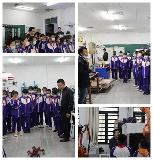 仪式前,水高庄小学师生一行首先参观了机械工程学院专业实验室,在李博副书记的带领下,由学院董九志、畅博彦、刘海华、王天琪四位老师分别向水高庄小学的师生介绍了诸多大型机械仪器和设备的基础知识、结构原理和实际应用,讲述了机械工程学科在社会经济发展的应用领域和重要作用,老师们通过生动的讲解,为小学生上了一堂生动的科学教育课。