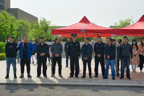 为深入贯彻落实习近平总书记关于做好国家安全工作的重要指示精神,提升广大师生国家安全意识,2021年4月15日,在第六个全民国家安全教育日,围绕“践行总体国家安全观,统筹发展和安全,统筹传统安全和非传统安全,营造庆祝建党100周年良好氛围”这一主题,党委安全工作部(保卫处)开展了国家安全教育日宣传活动和反恐防暴实战演练。副校长张玉波,学苑派出所所长张营,保卫处负责同志、保安人员及师生共100余人参加了活动。