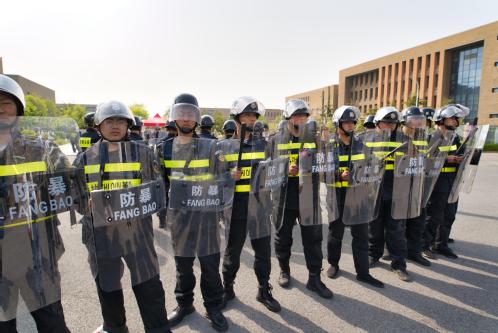 下午两点半,校园保安队进行了反恐防暴实战演练。按照演练程序,保安队员出色地完成了演练内容。通过对演练各步骤的介绍,使现场观摩师生深入了解面对暴恐事件时如何合理处置、自护自救及有效逃生避险的知识,提升了校园安保力量在暴恐事件中快速反应、突击攻坚、协同联动的能力。
