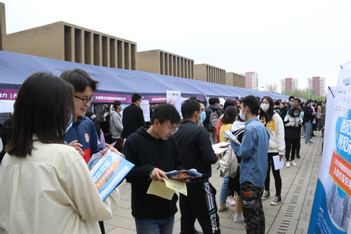 喜迎建党百年,筑梦青春征程。4月22日下午,我校在励志广场举办2021届毕业生春季大型双选会。本场双选会共邀请全国近20个省(自治区、直辖市)的345家优质用人单位,涉及纺织材料、机械制造、互联网通信、建筑房地产、生物医药、化工环境、教育金融等多个领域,累计提供各类本科及以上招聘岗位近6500个,共有4000余名学生参加,活动也吸引了很多非毕业班学生前往现场了解企业需求。