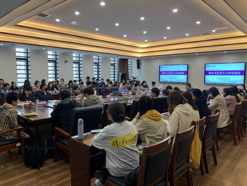 孔明安教授在讲座中首先概括了20世纪80年代以来国内马克思主义哲学研究中关于“主体性研究、实践哲学、生存论问题、应用哲学研究”等前沿问题,并对国外马克思主义专业的学科归属问题做了分析。接下来,孔教授对国外马克思主义学者关于意识形态的概念、特征、内涵等问题进行了全面梳理和阐释,并举例说明了加强意识形态教育的重要性。讲座中,孔教授还对“拜物教问题”“当代资本主义和消费主义研究”“后马克思主义思潮”“新辩证唯物主义与生命哲学”等研究热点进行了介绍与阐释。